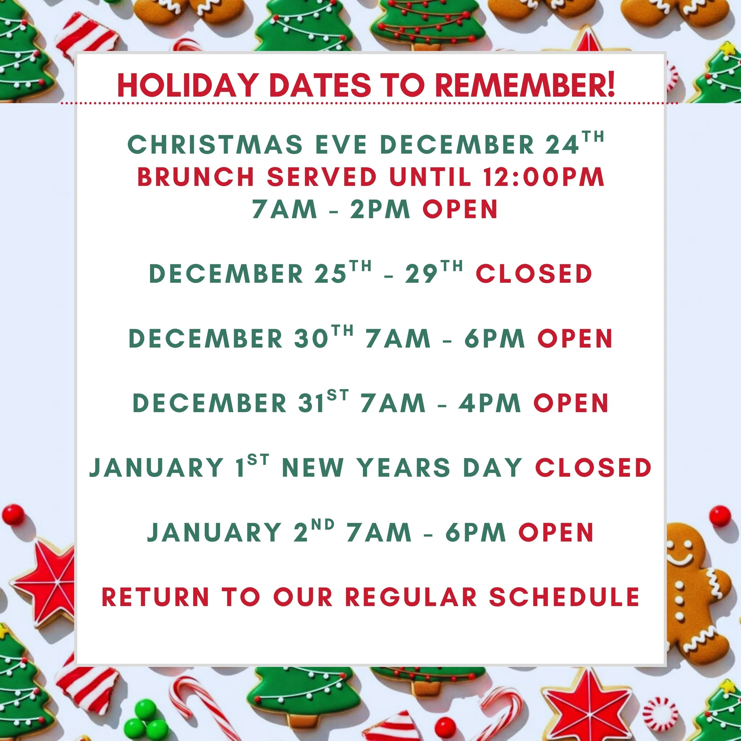 PICK UP FOR HOLIDAY ONLINE ORDERS DECEMBER 19 - 24 *